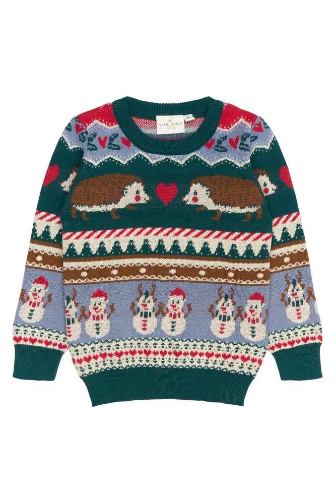 Vi har fundet Holiday Jacquard Pullover – Multi – fra The New Siblings hos Babysam.dk i kategorien Cardigans Veste Trøjer. Denne julesweater fra THE NEW Siblings er fuld af charme og vintermagi. Den har farverige og detaljerede motiver – inklusive pindsvin, hjerter, snemænd og klassiske ferieelementer – hvilket skaber et sjovt og festligt look. Den bløde strik og